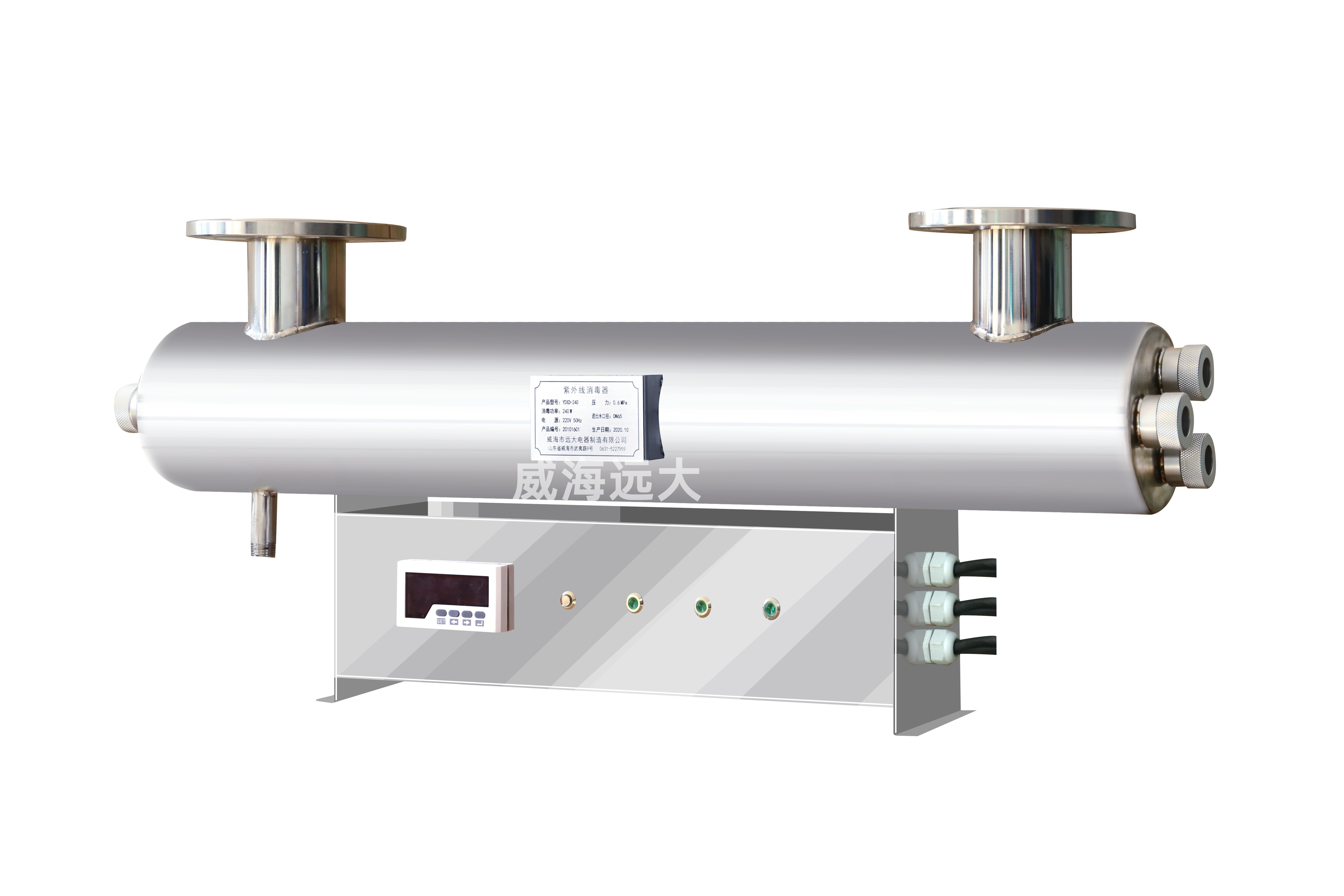 紫外線消毒器是以紫外汞燈為光源,利用燈管內汞蒸氣放電時輻射的253.7nm紫外線為主要光譜線,對水體進行消毒的設備。紫外線燈管專用型電子鎮流器,筒體常用不銹鋼制造,內壁多作拋光處理以提高對紫外線的反射能力和增強輻射強度,還可根據處理水量的大小調整紫外燈的數量。